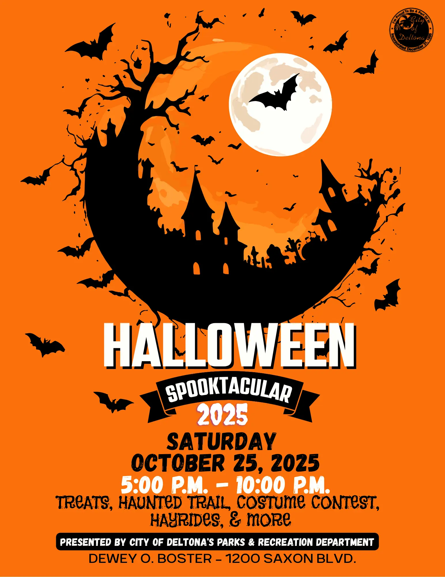 Mark your calendars as the City of Deltona will hold their 2025 Halloween Spooktacular on Saturday, October 25th! One of Deltona’s biggest community events of the year, come out for an evening of frightful family fun featuring tons of treats, a costume contest (for ghouls of all ages!), haunted trail, hayride, music, and more! Come ready to show off your costumes and don’t miss the thrills! Admission to the festival is free; hours are 5-10pm.