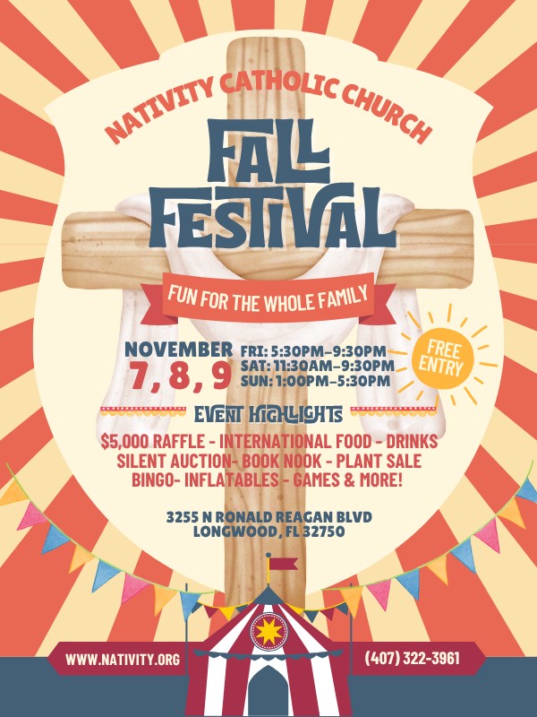 Come out Nov 7th, 8th and 9th for Nativity’s 16th Annual Fall Festival. Enjoy fun for the whole family while being United in Faith and Fellowship! The festival will feature our popular $5,000 Cash Prize raffle, bingo, shopping, silent auction and more. Come out for festival food, beer, games, music and much more! The event is Free to attend. To find out more visitΒ http://www.nativity.org.
